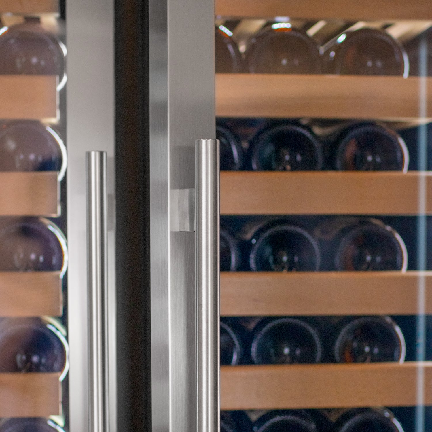 • 10 sturdy elegant wood shelves in each wine zone can store your collection to a total of up to 100 bottles