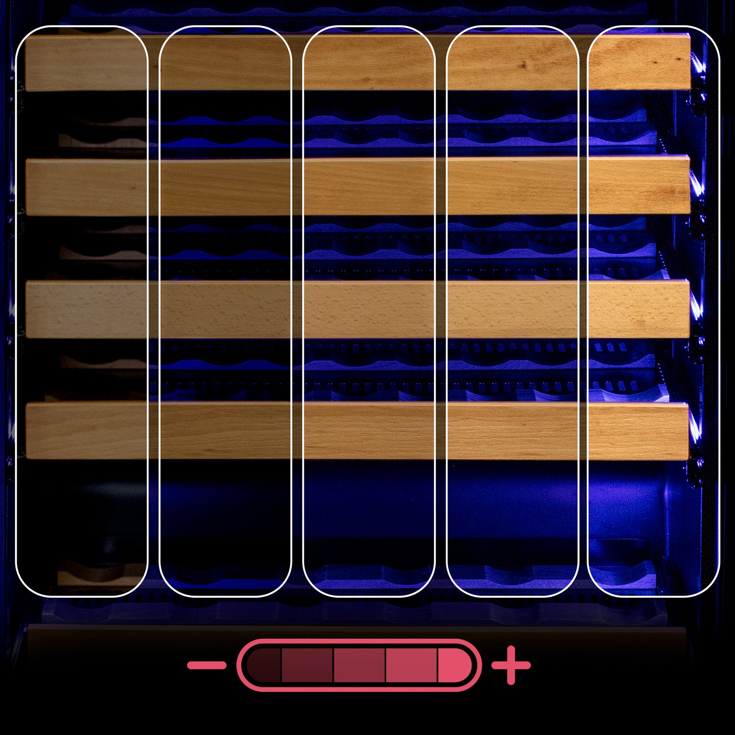 • You'll have the flexibility to store up to 119 bottles of wine with Allavino's clever FlexCount shelving design. Cheers to that!