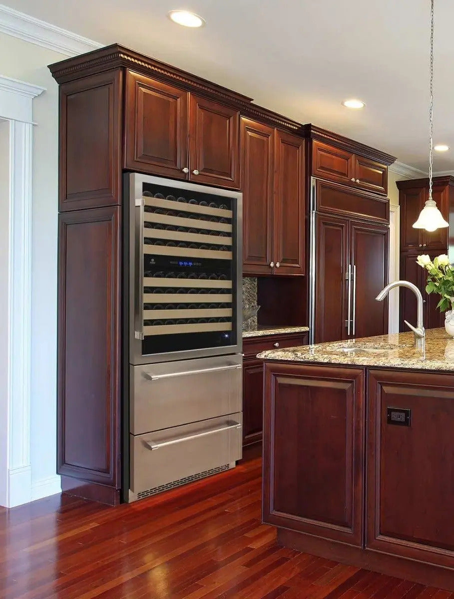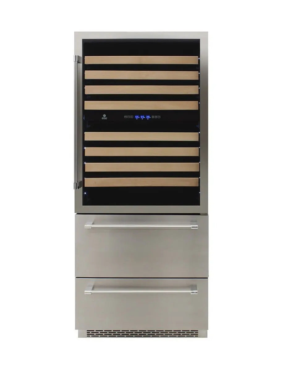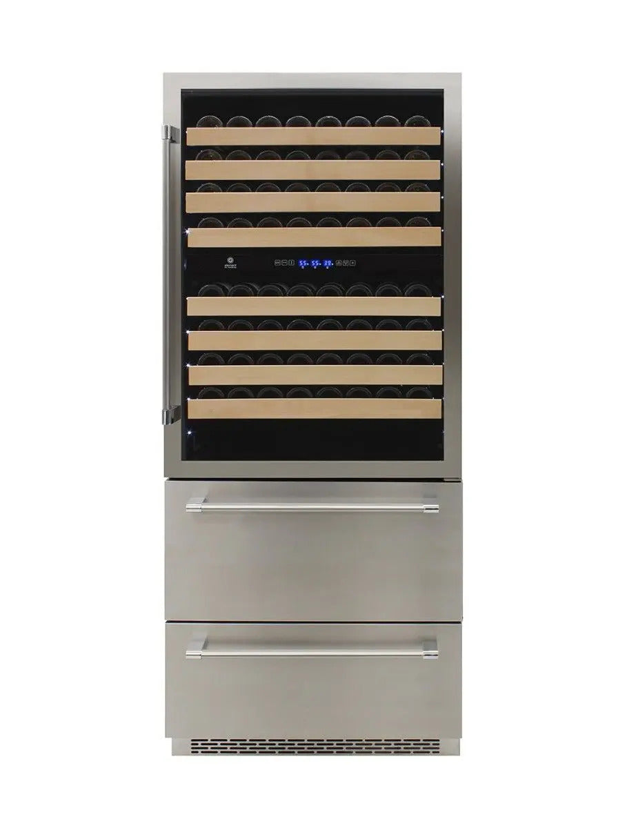 **Vinotemp 135 Bottle Triple-Zone Wine Cooler with 2 Bottom Drawers, Stainless