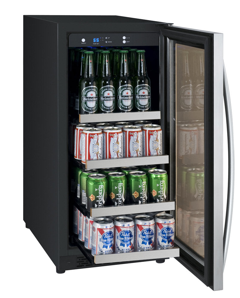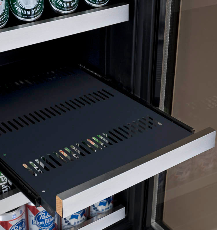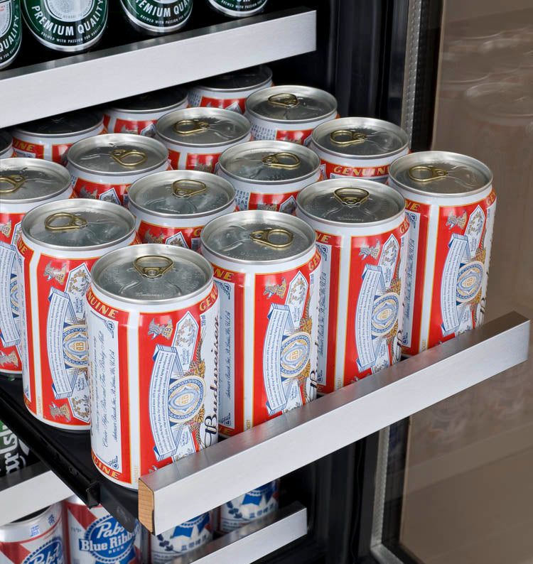 • FlexCount shelving design gives you flexible storage options for up to 28 standard beer bottles and 64 12-oz. beverage cans