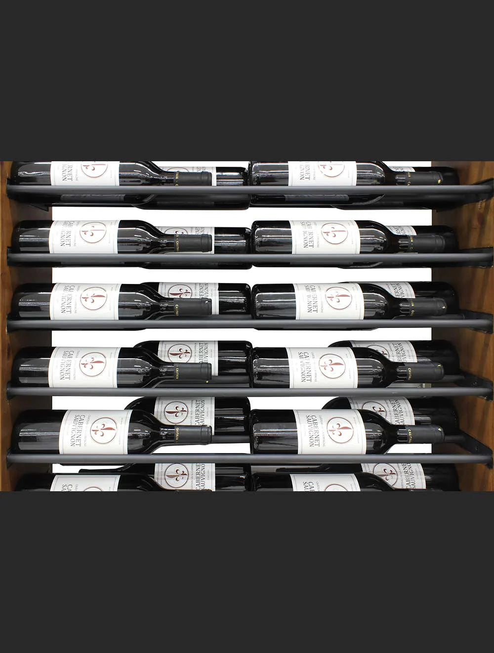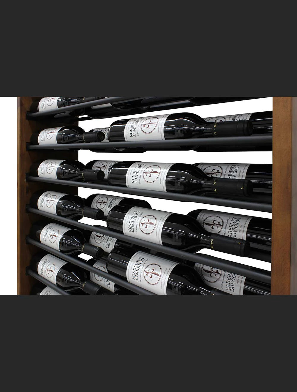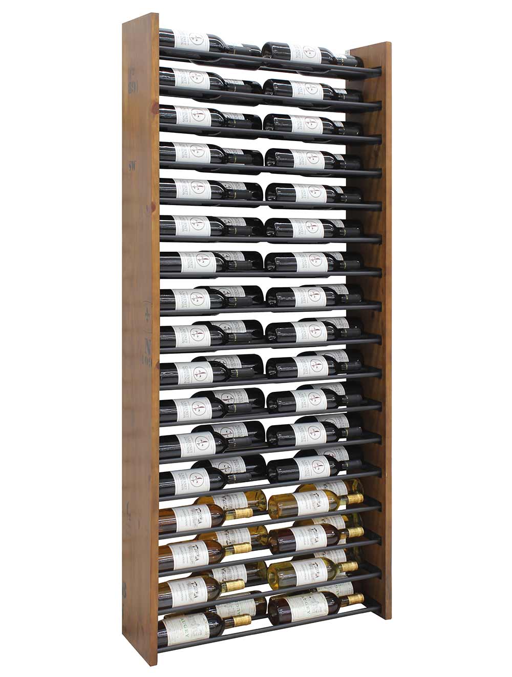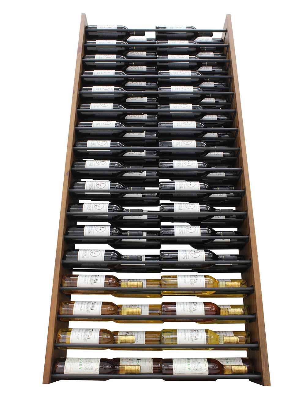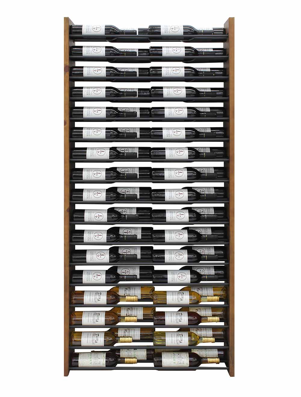 • This wine shelf comes with the capacity to house 68 standard size wine bottles, 4 bottles per horizontal display rack.