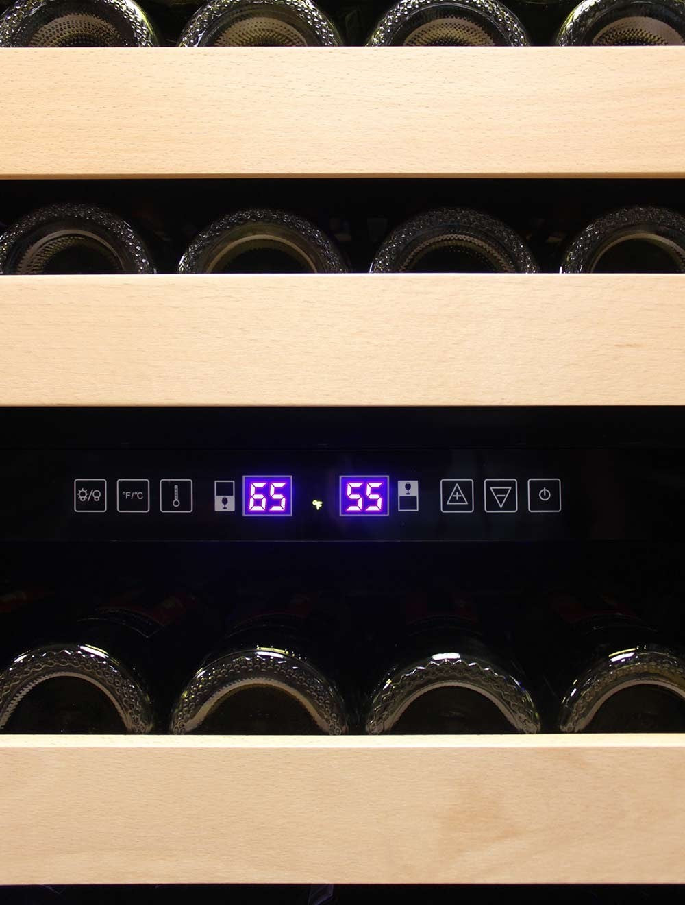 • Temperature range: upper zone (40-56°F) / lower zone (54-65°F)