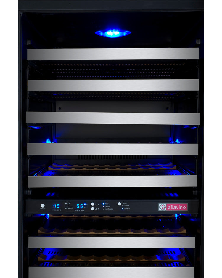 Allavino 24" Wide FlexCount II Tru-Vino 121 Bottle Dual Zone Stainless Steel Right Hinge Wine Refrigerator
