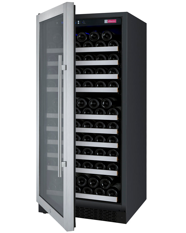Large capacity 128 bottle wine fridge, The Allavino FlexCount II VSWR128-1SL20 Single Zone Wine Refrigerator with Tru-Vino Technology. Featuring a  24" wide cabinet that can be used as a stylish freestanding unit or built into your cabinetry for seamless wine storage.