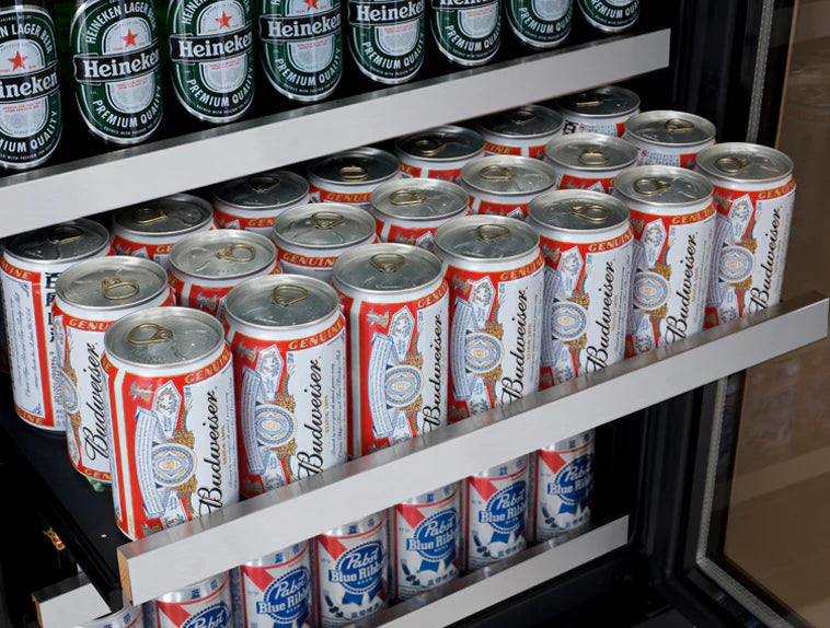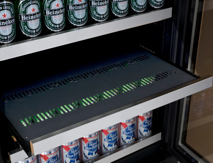 Explore the advanced features of Allavino's FlexCount II 24" Wide VSBC24-SR20 Beverage Center, designed for superior built-in or freestanding storage of your favorite beers and sodas. With the latest innovative Tru-Vino Temperature Control Technology, you can precisely set and maintain the perfect temperature for your beverages using the user-friendly digital control panel. The exclusive FlexCount shelving system ensures ultimate flexibility and versatility, allowing you to easily store a variety of bottles and cans. Enjoy the convenience of easy gliding shelves, providing quick access to your entire collection.