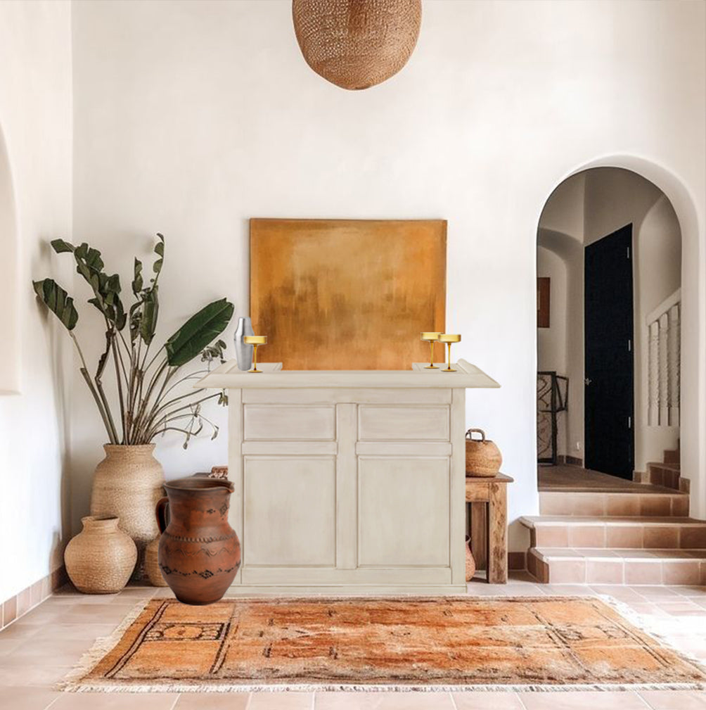 A must-have for any host or hostess, this classic English/Irish pub cocktail bar is destined to be the centerpiece of your entertaining space. Its striking paneled front with raised molding adds a dramatic flair that exudes timeless charm and elegance. Behind the bar, ample shelving provides plenty of room for glassware and spirits, while a removable shelf offers the flexibility to accommodate a mini fridge, ensuring your guests are always served in style. This bar is the perfect blend of functionality and design, making it an essential piece for any home bar setup.