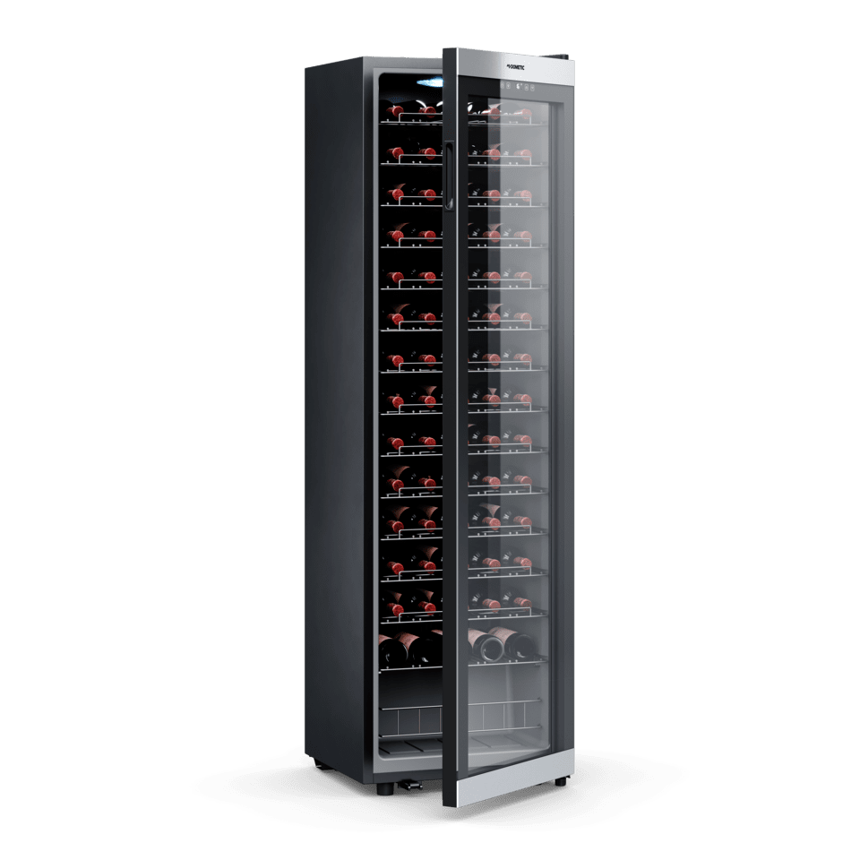 This single-zone wine cooler  C75Fis a beautiful addition to any home, restaurant or hotel bar. It has room for 75 Bordeaux bottles – attractively presented behind a 3-layer glass door and softly illuminated with a white interior light. Suitable for freestanding use.