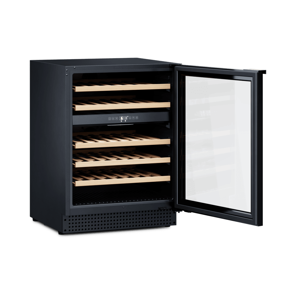 Enhance your kitchen with this dual-zone wine cooler that can be seamlessly built-in to create an elegant style in any home. It has room for 46 Bordeaux bottles attractively presented on FSC certified wooden shelves.