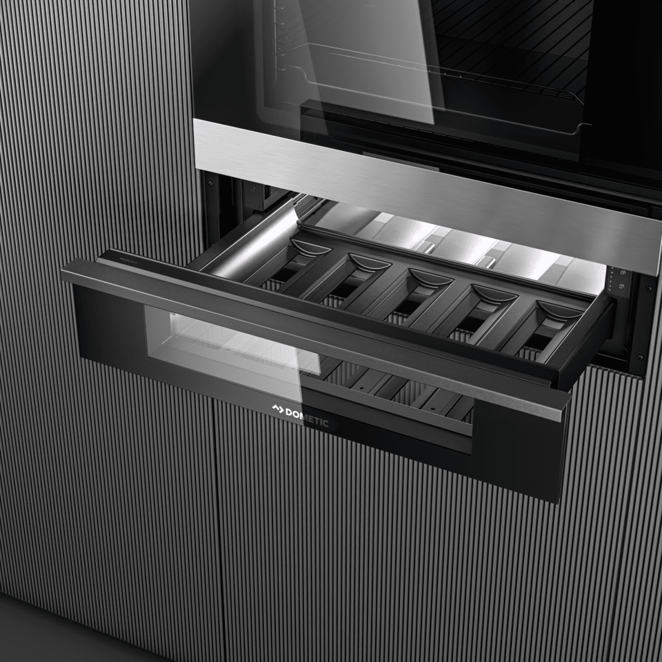 Elevate your kitchen with Dometic DrawBar – the perfect finishing touch. DrawBar blends seamlessly in any kitchen, cools five bottles, and ensures they are always ready to serve at the ideal temperature. Soft illumination adds a touch of luxury.