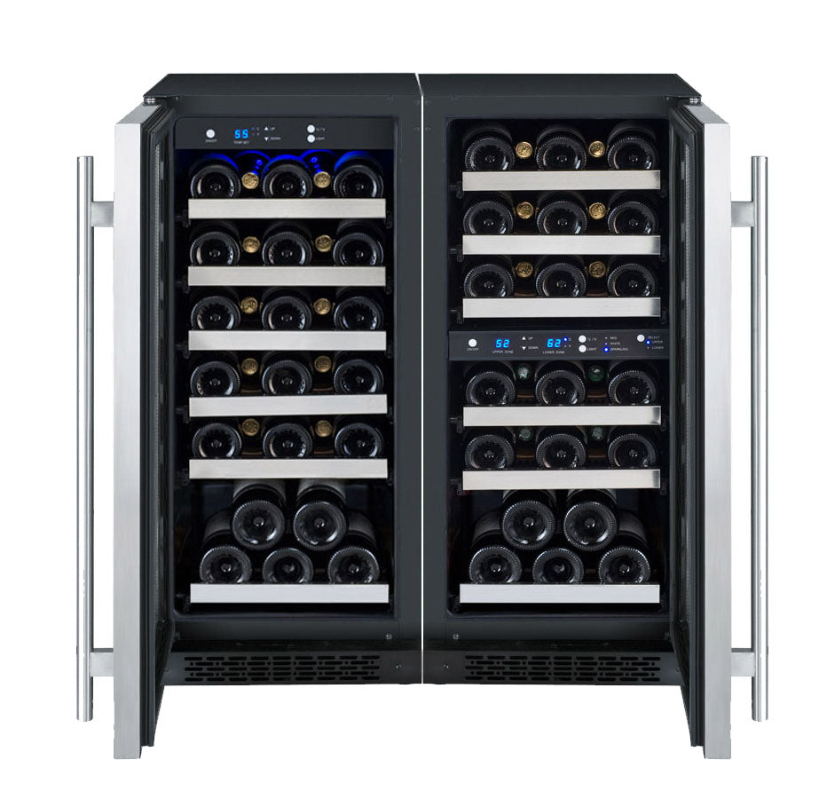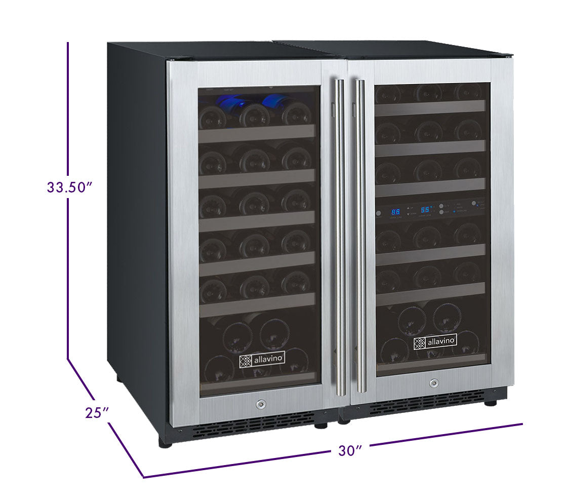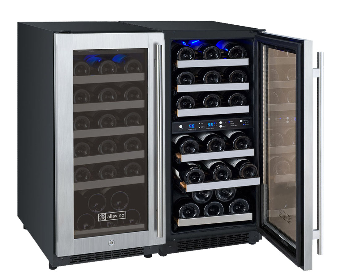 Allavino FlexCount 60 Bottle Three Zone Undercounter Side-by-Side Wine Refrigerators with Stainless Steel Doors