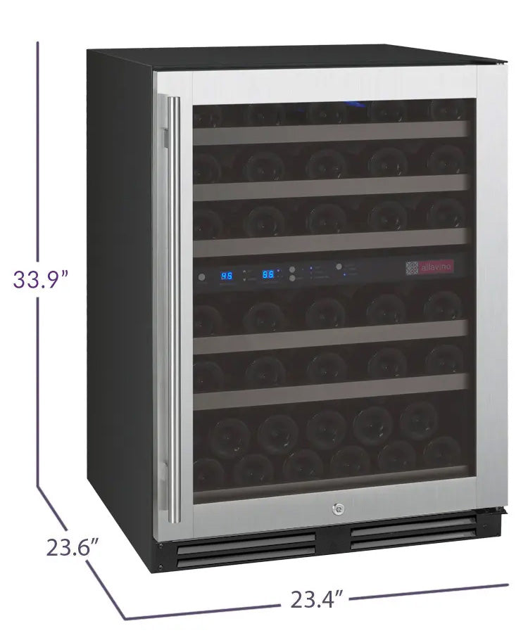 Allavino FlexCount Series 56 Bottle Dual Zone Built-In Wine Refrigerator with Stainless Steel Door - Right Hinge
