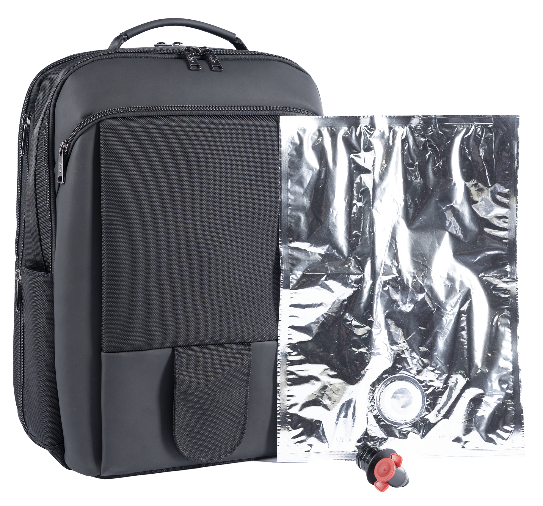 The VinXplorer comes with a removable **Vin2Go hard shell carrier** for two bottles, so you’ll never be without refills. When not being used as a drink carrier, simply remove the inserts, and the VinXplorer becomes an everyday **backpack with a padded laptop compartment**, ideal for work, travel, or daily activities.