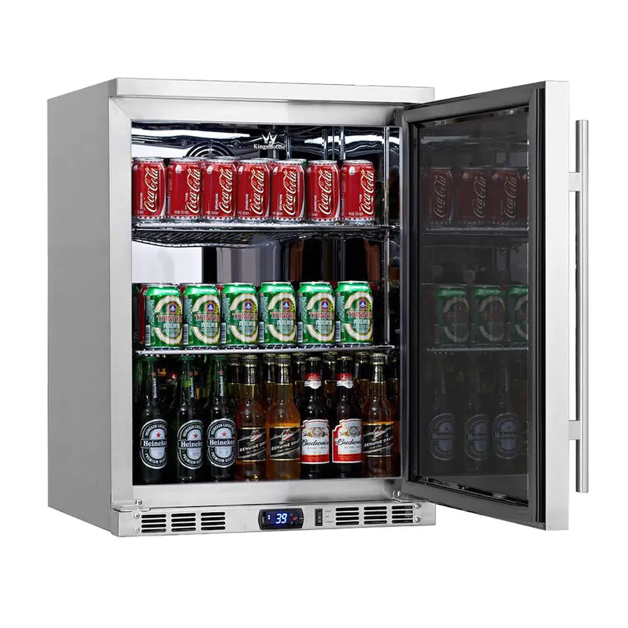KingsBottle 126 Can 24″ Under Counter Left Hinge Outdoor Stainless Steel Beverage Refrigerator