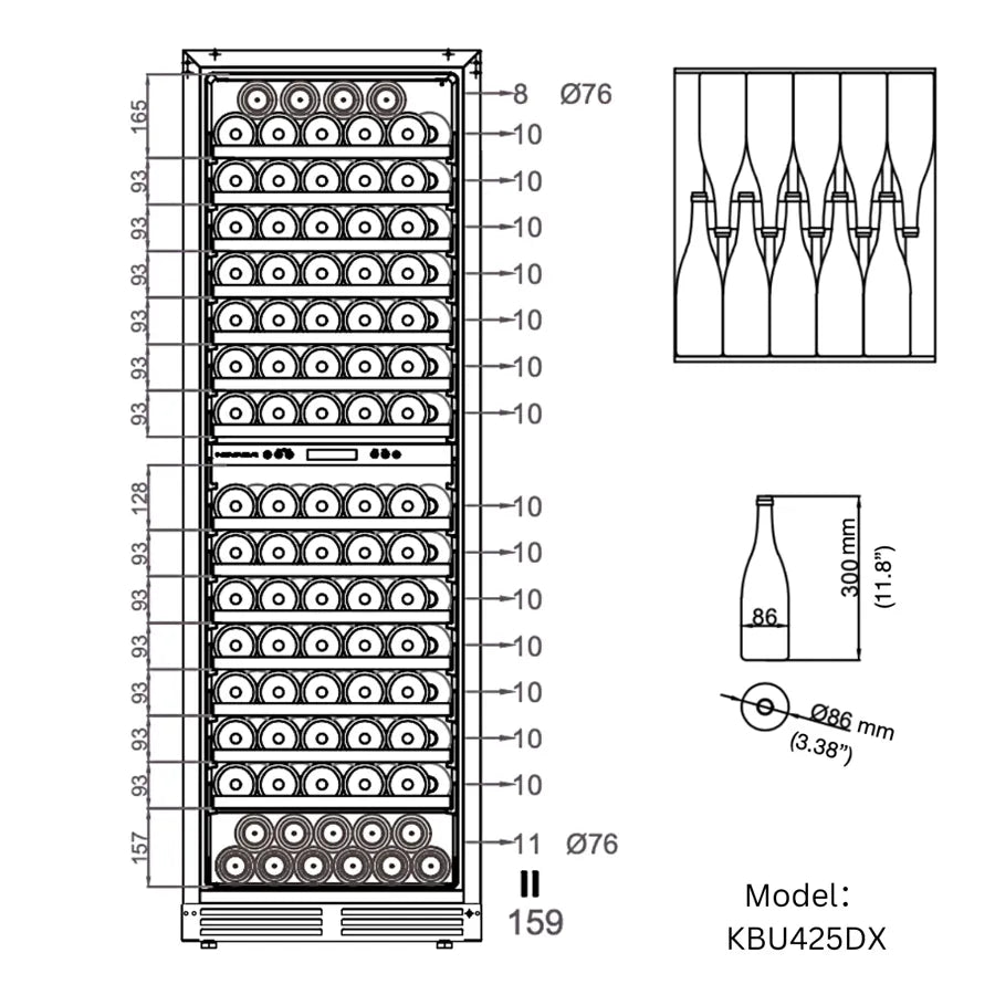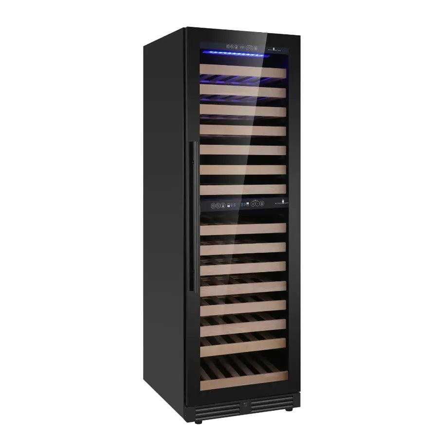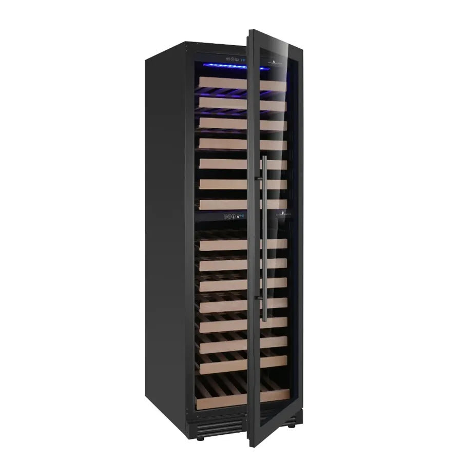 KingsBottle 159 Bottle Upright Low-E Glass Door Right Hinge Dual Zone Black Wine Cooler