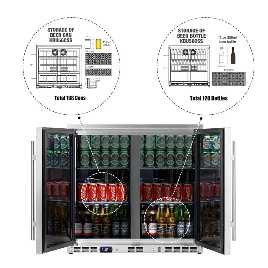 KingsBottle 198 Can 36″ Heating Glass 2 Door Under Counter Stainless Steel Beverage Refrigerator