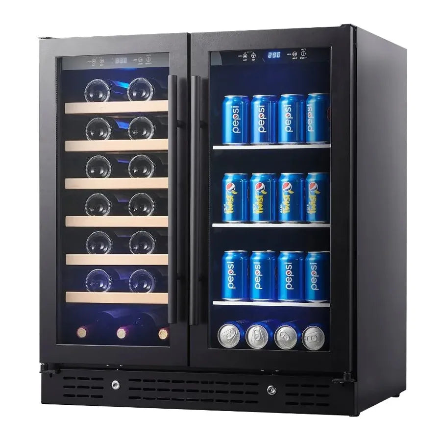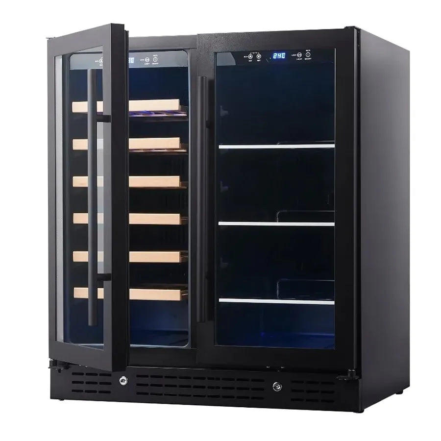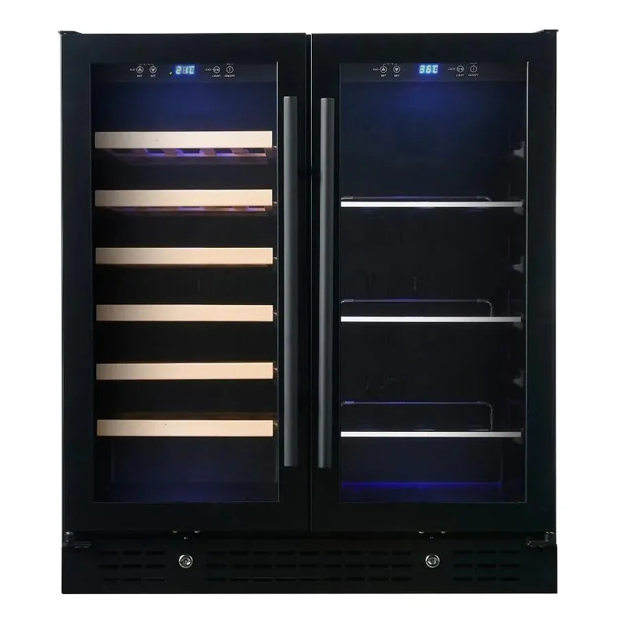 KingsBottle 30″ Low-E Glass Door Black Wine And Beverage Refrigerator Combo