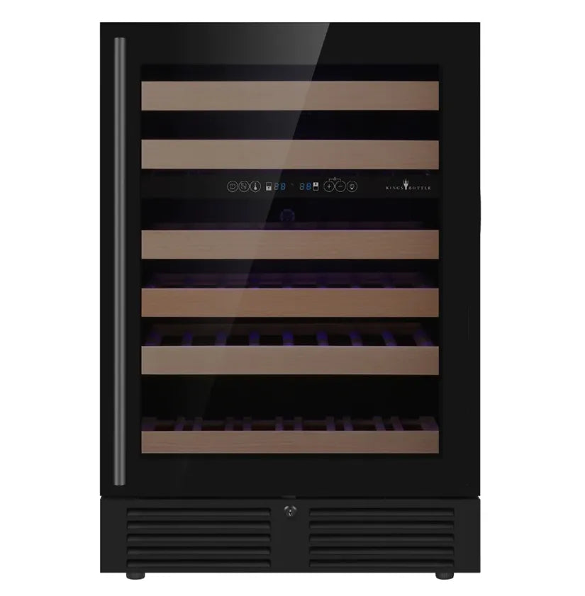 KingsBottle 46 Bottle 24″ Under Counter LOW-E Right Hinge Glass Door Dual Zone Black Wine Cooler