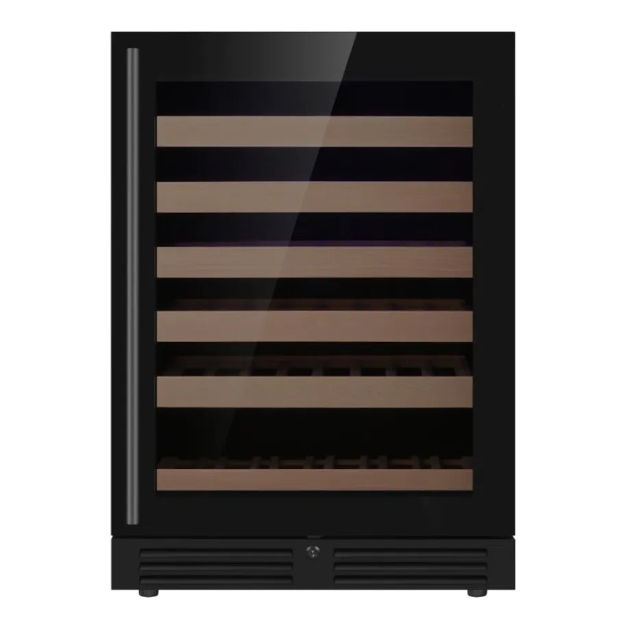 KingsBottle 46 Bottle 24″ Under Counter LOW-E Right Hinge Glass Door Single Zone Black Wine Cooler