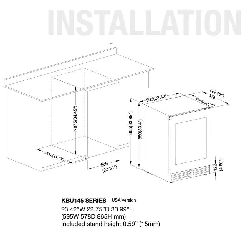 This single zone wine cooler from KingsBottle is a must-have for wine enthusiasts who value both aesthetics and quality. Expertly designed and crafted, the cooler maintains and enhances the taste and quality of your wines. Inspired by the renowned KBU145DX dual-zone model, this single-zone cooler is a precise and sophisticated instrument that offers a sleek design with hidden hinges and low-E glass door for UV protection. Inside, high-quality oak shelves efficiently store up to 46 standard-sized wine bottles while minimizing vibration and noise.