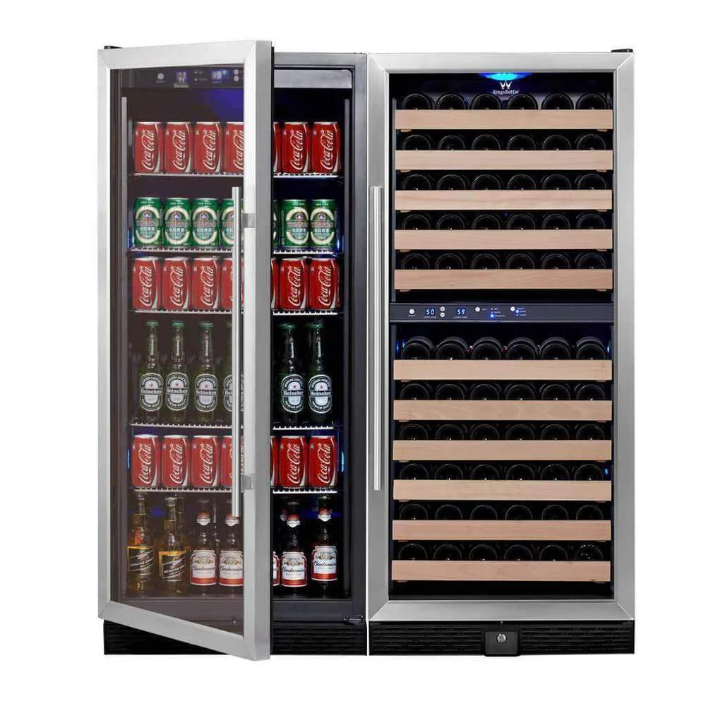 KingsBottle 56″ Upright Glass Door Stainless Steel Wine And Beverage Refrigerator Combo