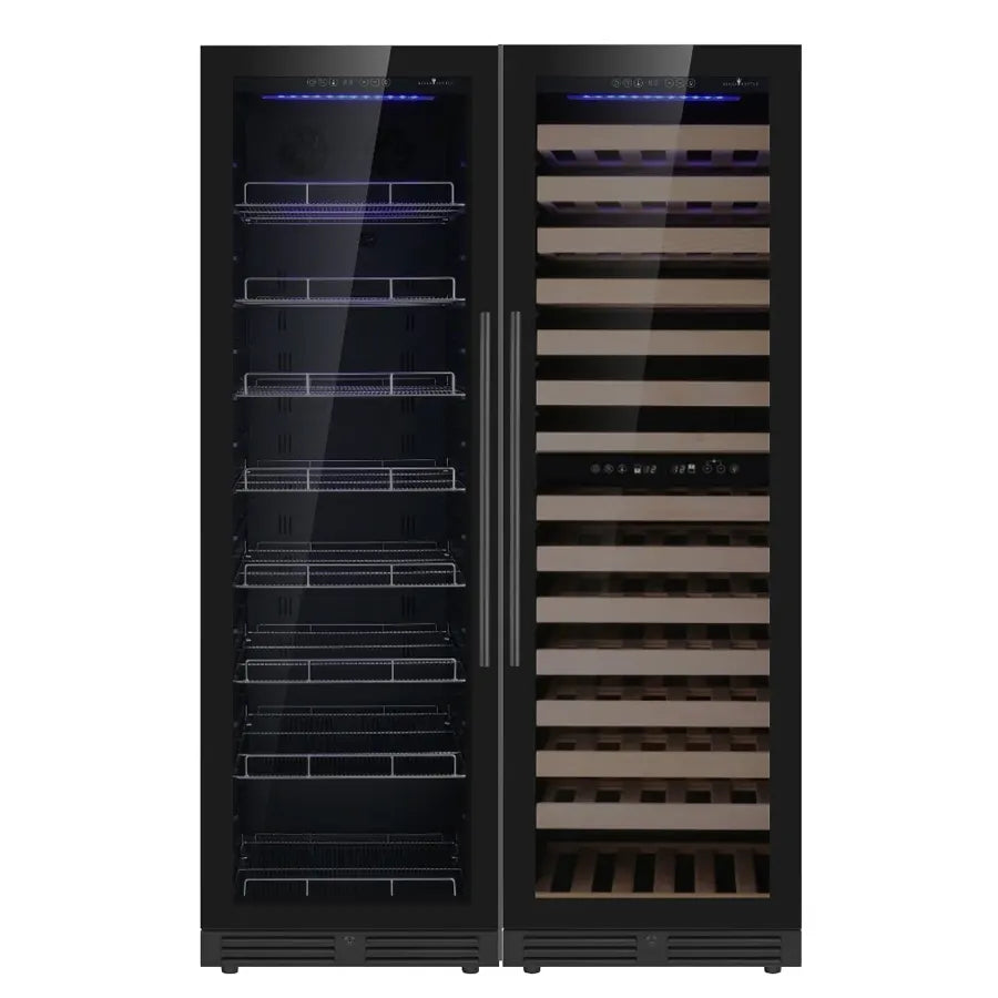KingsBottle 71″ Tall Upright Low-E Glass Door Black Wine And Beverage Refrigerator Combo