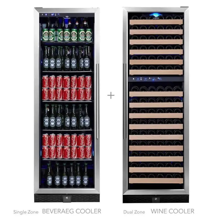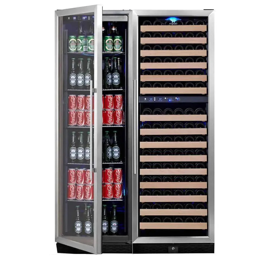 KingsBottle 72″ Tall Glass Door Stainless Steel Wine And Beverage Refrigerator Combo