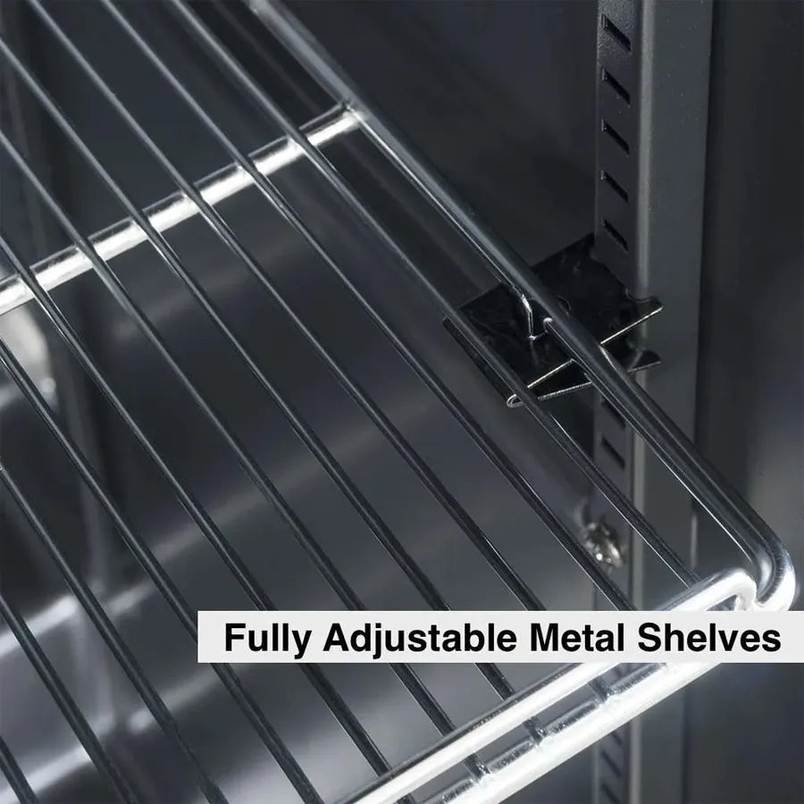 • Shelf Configuration: 8 Chromed Steel Shelves + 15 wooden shelves
