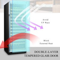 UV-Protected Dual Pane Tempered Glass Door: Blocks harmful UV rays that degrade wine quality over time. The reversible door offers flexible placement to fit any room layout.