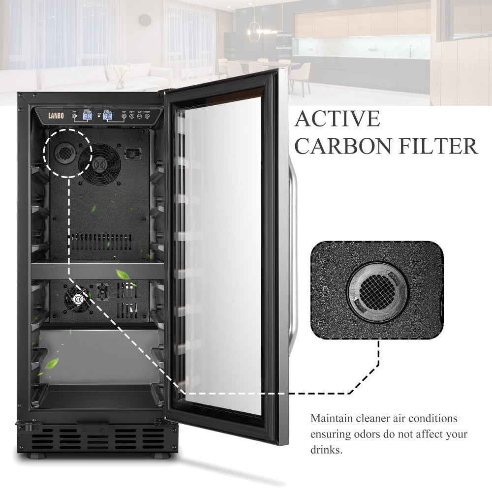 The counter high-quality carbon filtration system ensures air purity, and cooling efficiency, and maintains an odor-free storage cabinet, helping to maintain the quality and taste of the wine.