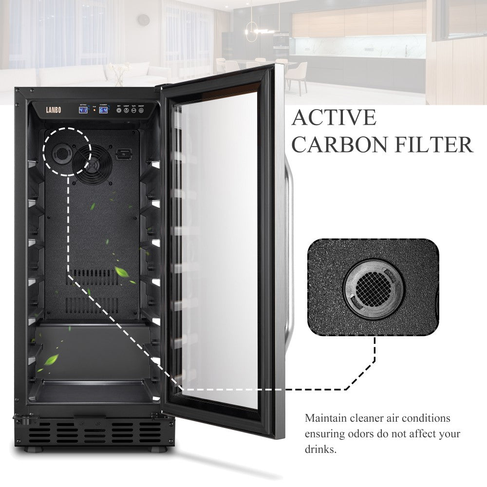 Supplement your kitchen with this LANBO under-counter wine refrigerator to store all of your great collection. The wine refrigerator offers capacity for up to 44 bottles of 750 ml standard Bordeaux bottles. With 2 temperature-controlled zones, it can keep your different types of wine at the right temperature. The UV-protected double-pane tempered glass door and auto LED lighting help you quickly load the right bottles.