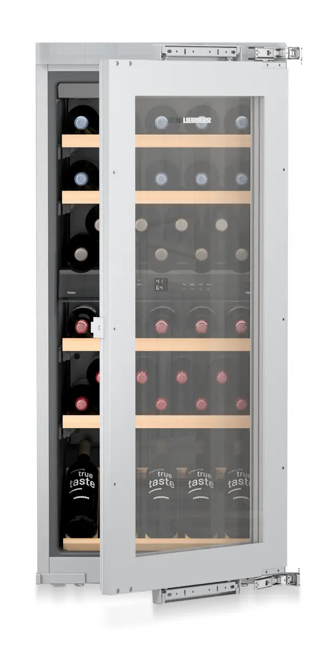Ideal humidityMaintaining proper humidity keeps corks from drying out. Over 50% humidity and horizontal bottle storage ensure long-term wine preservation. Humidity can be adjusted via the ventilation button. |