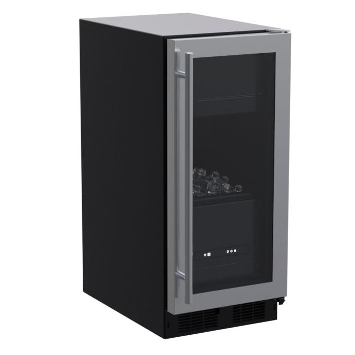 The Marvel 15-In Built-In Clear Ice Machine features a sleek stainless steel and glass reversible door, designed for seamless integration into your kitchen or bar area. This compact unit produces crystal-clear ice cubes, enhancing the presentation and quality of your beverages. Its built-in design saves space while providing reliable, high-performance ice production, ideal for both residential and professional settings.