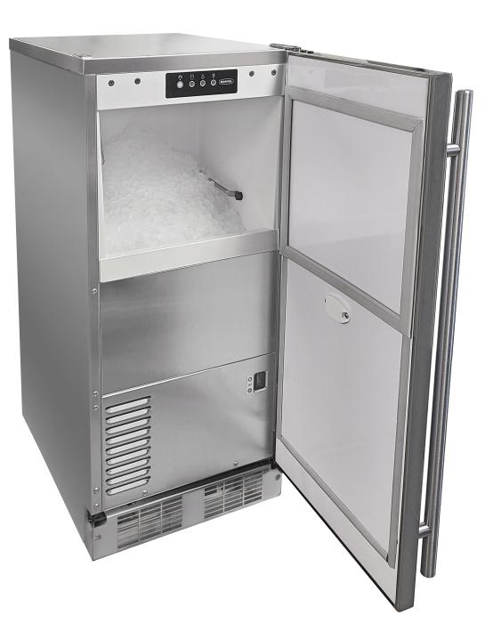Marvel 15 inch Outdoor Nugget Ice Machine Stainless Steel Solid Reversible Door