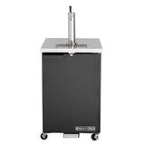 The Maxx Cold X-Series Single Tower, 1 Tap Beer Dispenser is built for robust use, delivering reliable performance and straightforward cleaning. It holds one keg with a storage capacity of 7.2 cubic feet (204 L). Perfect for bars, breweries, catering, and events, this dispenser features a black powder-coated steel exterior with a stainless steel top and a sanitary white powder-coated steel interior with a stainless steel floorplate. Fully insulated with 2-inch CFC-free polyurethane, it includes a 3-inch polished stainless-steel draft tower cooled by continuous cold air to minimize foam and maintain ideal serving temperature. The self-contained forced-air refrigeration and digital LED temperature control ensure consistent cooling. Designed for ease of maintenance and mobility, it has a slide-out condensing unit, recessed locking handles, and four swivel casters (two with brakes). An integrated condensate evaporator eliminates the need for a drain line. CO2 tank and regulator are required but not included. Backed by a one-year parts and labor warranty plus a five-year compressor warranty.