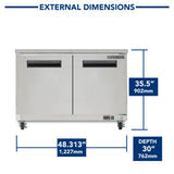 Maxx Cold 48.3 Inch Double Door Undercounter Refrigerator, Stainless Steel