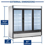Maxx Cold 81 Inch Triple Glass Door Merchandiser Freezer, Free Standing, 72 Cu. Ft