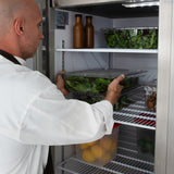 • Reach-in refrigerator with one self-closing, locking solid door with easy-to-grip recessed handle