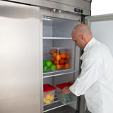 • Reach-in refrigerator with two self-closing, locking solid doors with easy-to-grip recessed handles