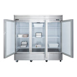• Reach-in freezer with three self-closing, locking doors with easy-to-grip recessed handles