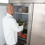 • Reach-in refrigerator with three self-closing, locking solid doors with easy-to-grip recessed handles