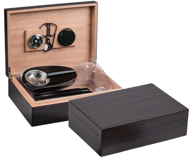 Prestige Import Group 50 Ct. Ebony Humidor Gift Set w/ Matching Accessories