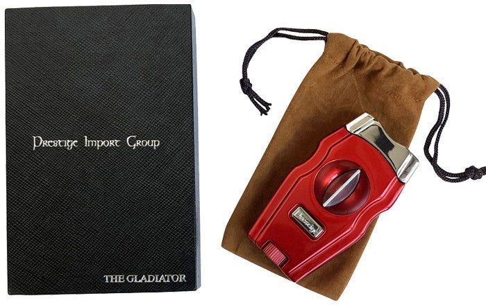 Prestige Import Group Metal Body Combination V-Cut w/ Built-in Punch Cigar Cutter (Candy Apple Red Pearl)