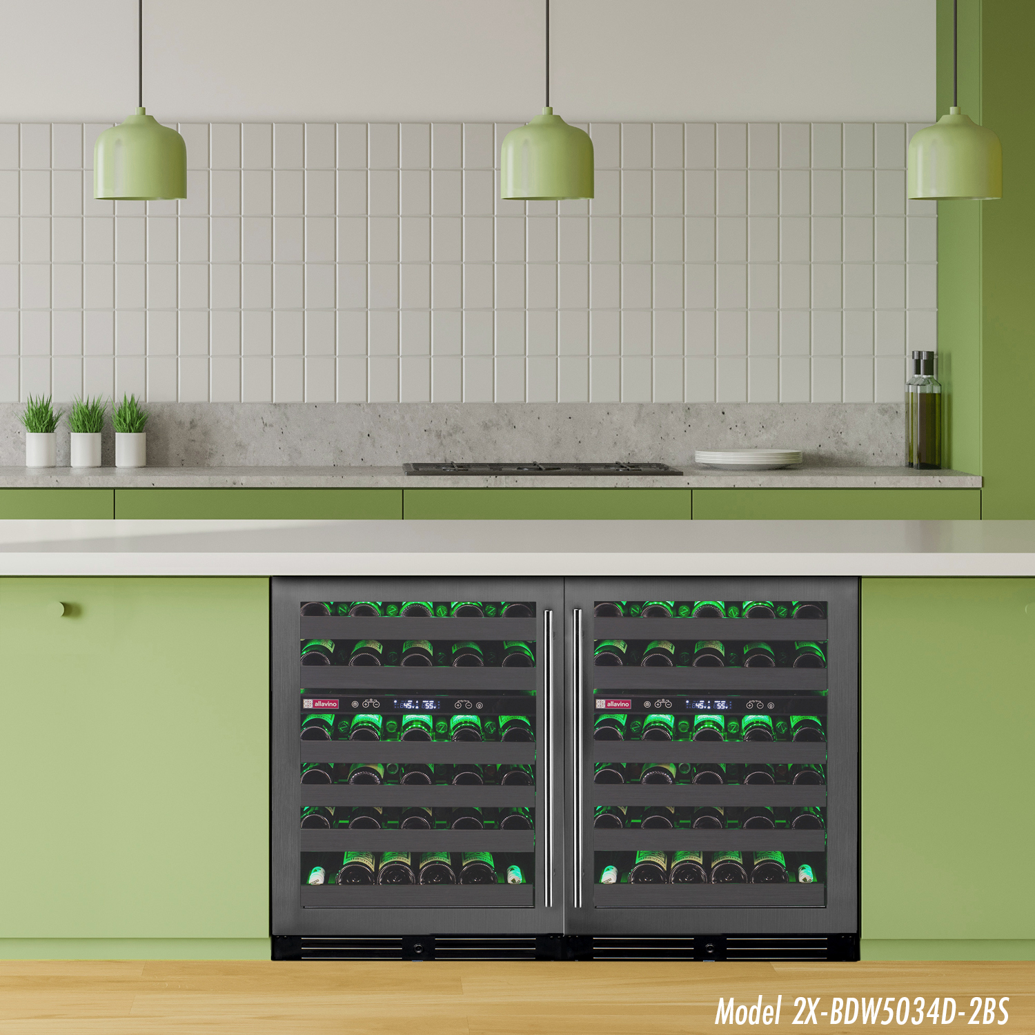 The Allavino Reserva 2X-BDW5034D-2BS Four Zone Side-by-Side Wine Refrigerator Cooler with Tru-Vino® temperature control technology makes it easy to store up to 100 wine bottles of various sizes, and can be built into your cabinetry for seamless wine storage.