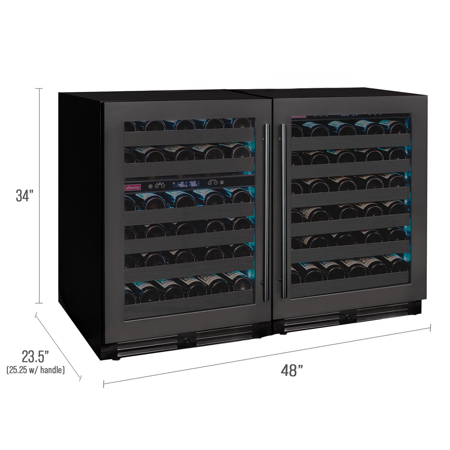 Allavino Reserva Series 100 Bottle Undercounter - Three Zone Black Side-by-Side Wine Refrigerators with Black Stainless Steel Doors