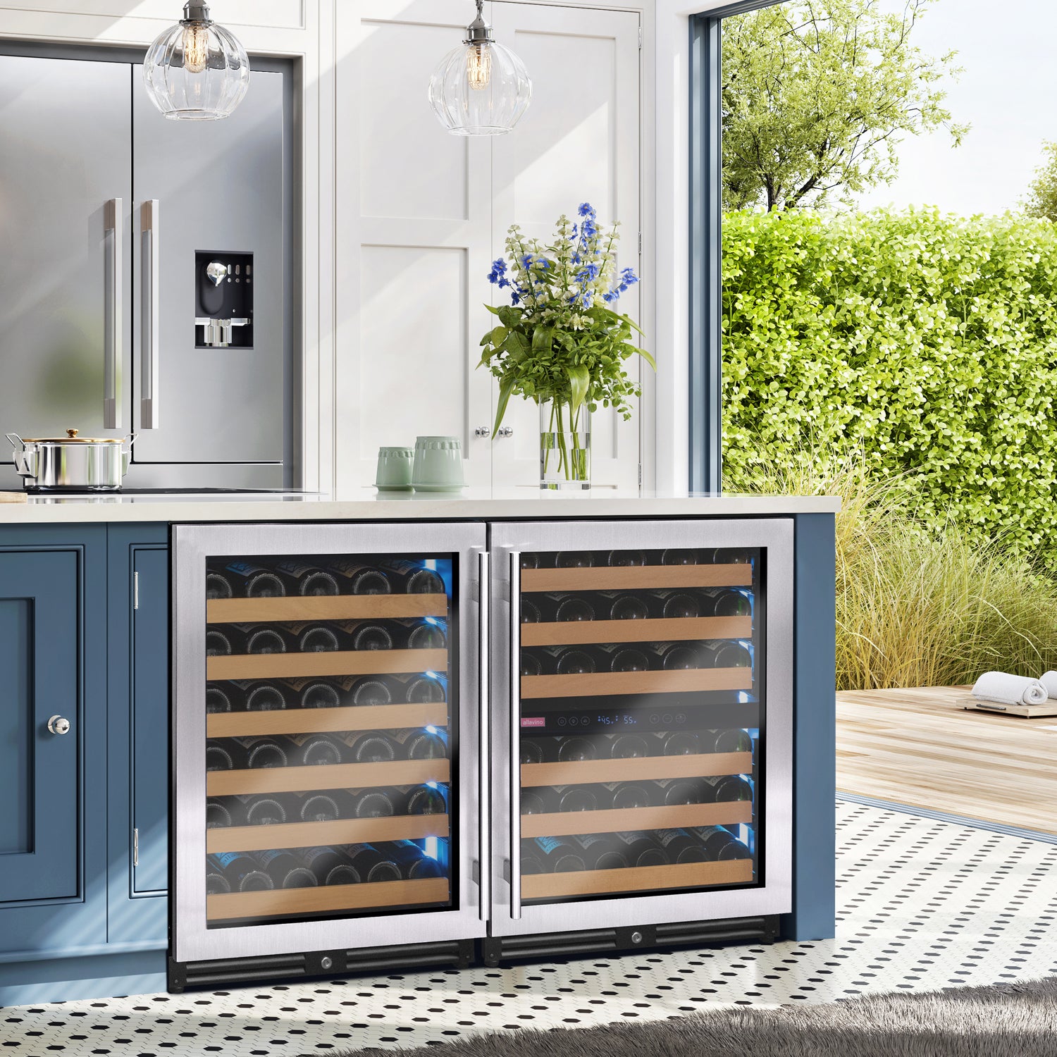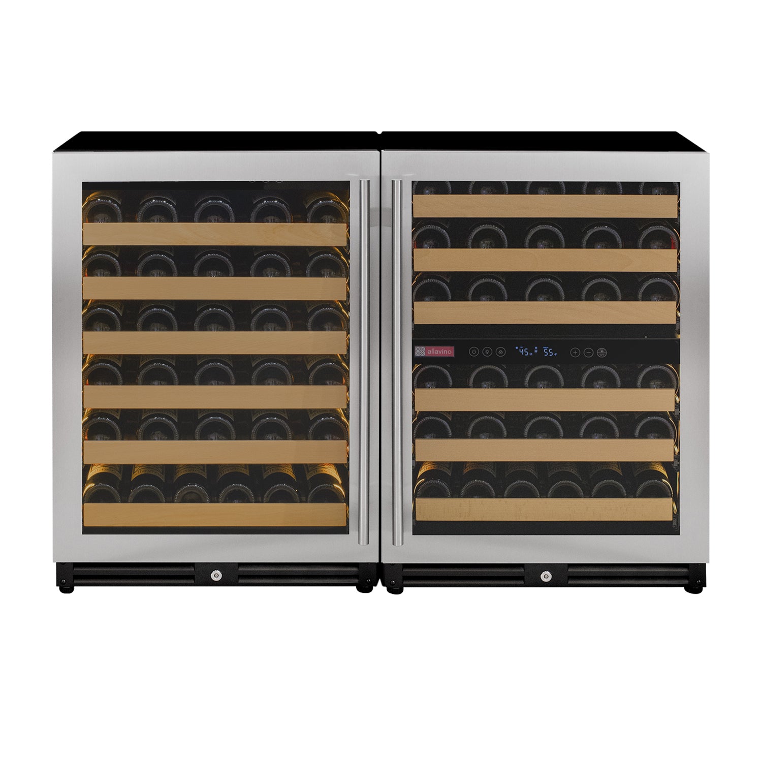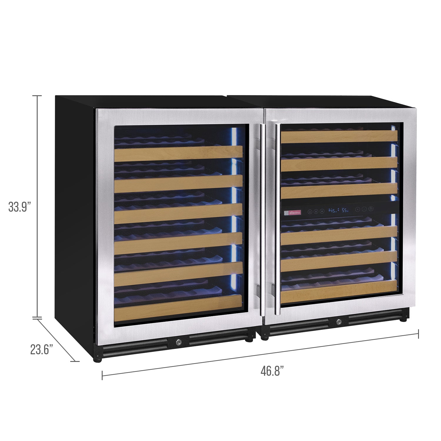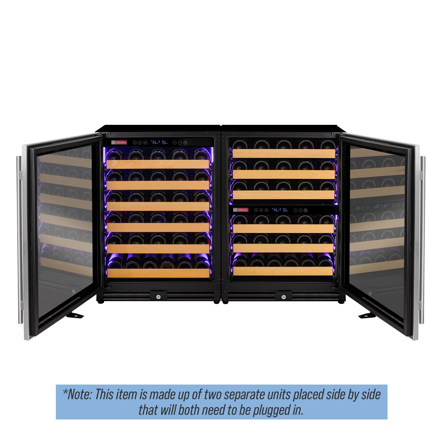 Allavino Reserva Series 112 Bottle Three Zone Undercounter Wine Refrigerator Cooler with Stainless Steel Doors - Side-by-Side