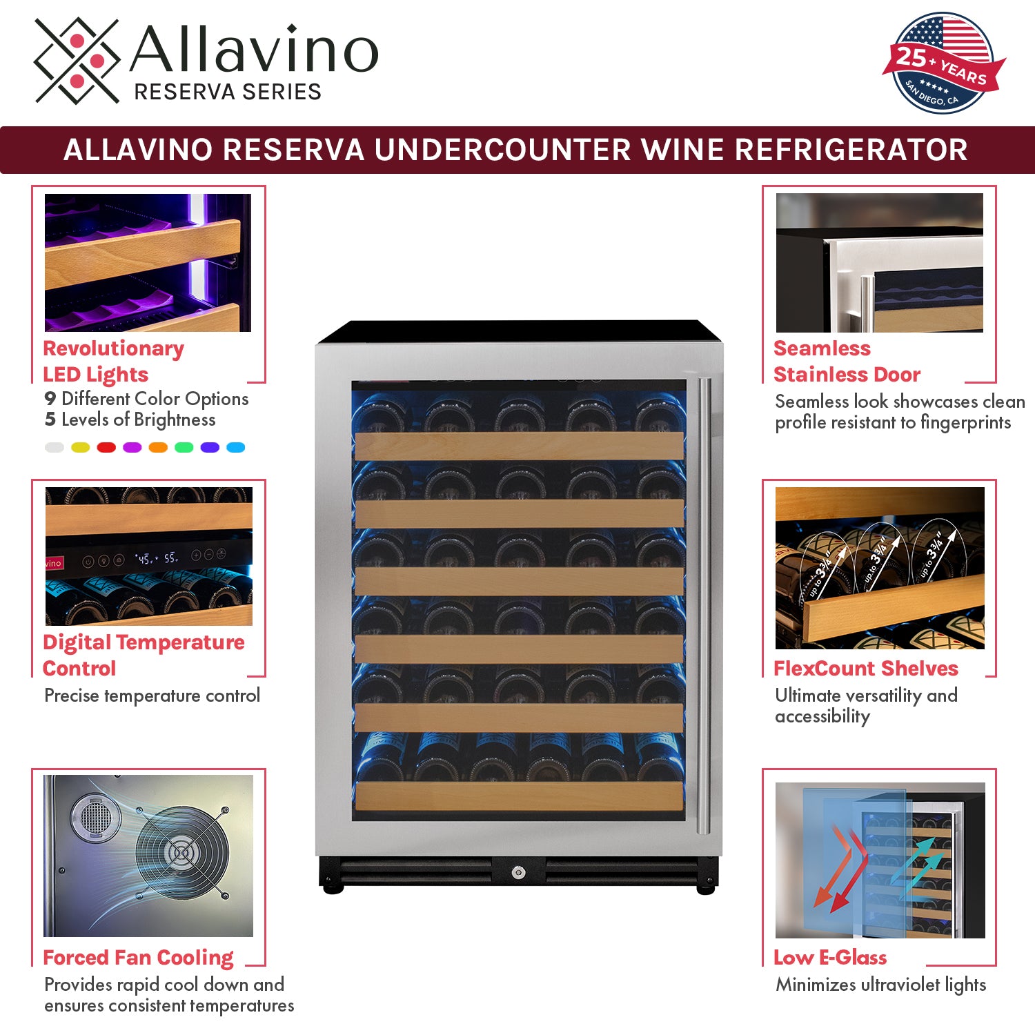 • Allavino's FlexCount shelving design cradles your bottles to give you flexible storage options for up to 112 bottles of wine