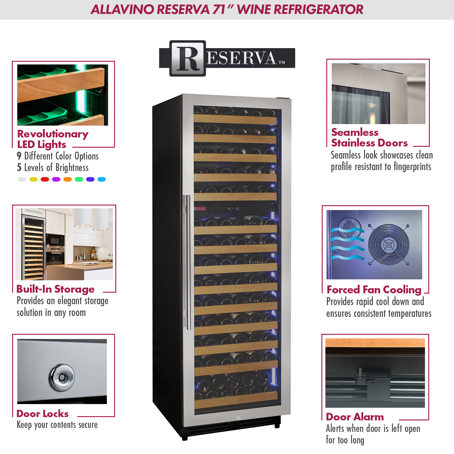Allavino Reserva Series 154 Bottle 71" Tall Dual Zone Right Hinge Stainless Steel Wine Refrigerator