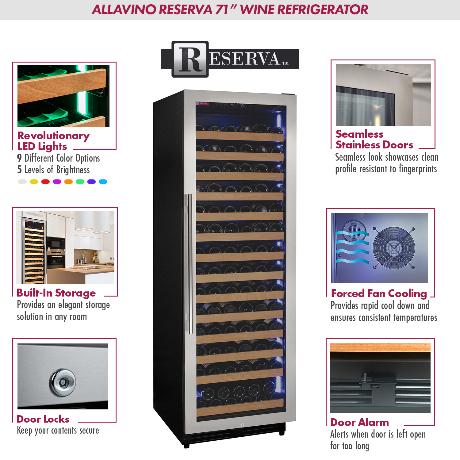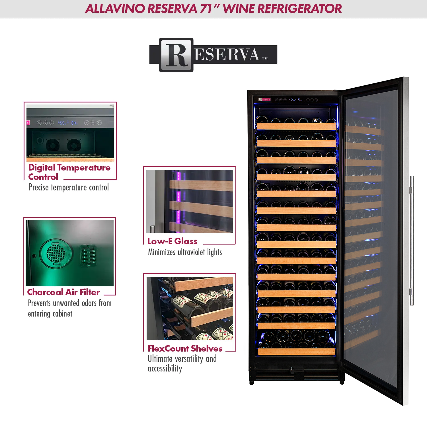 Allavino Reserva Series 163 Bottle 71" Tall Single Zone Right Hinge Stainless Steel Wine Refrigerator
