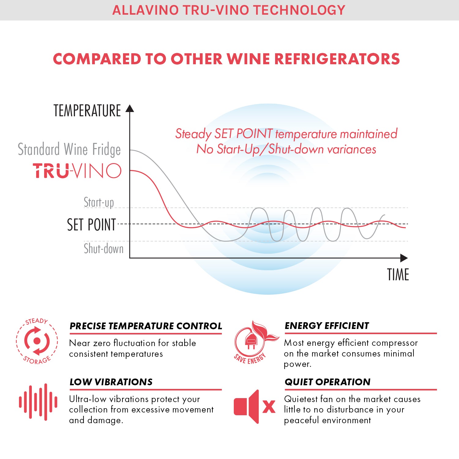 Allavino Reserva Series 172 Bottle Dual Zone Built-in Wine Refrigerator with Black Glass Door - Right Hinge