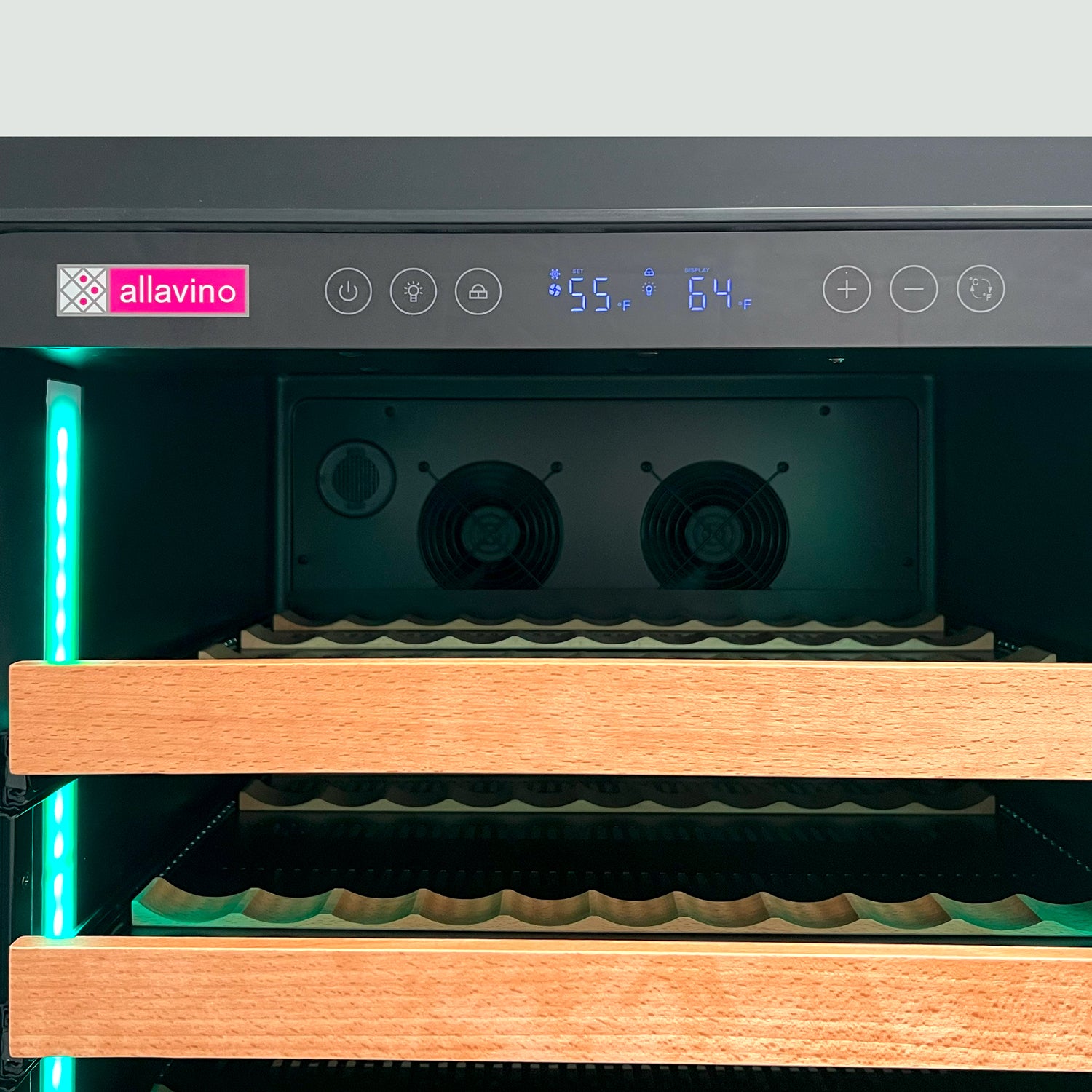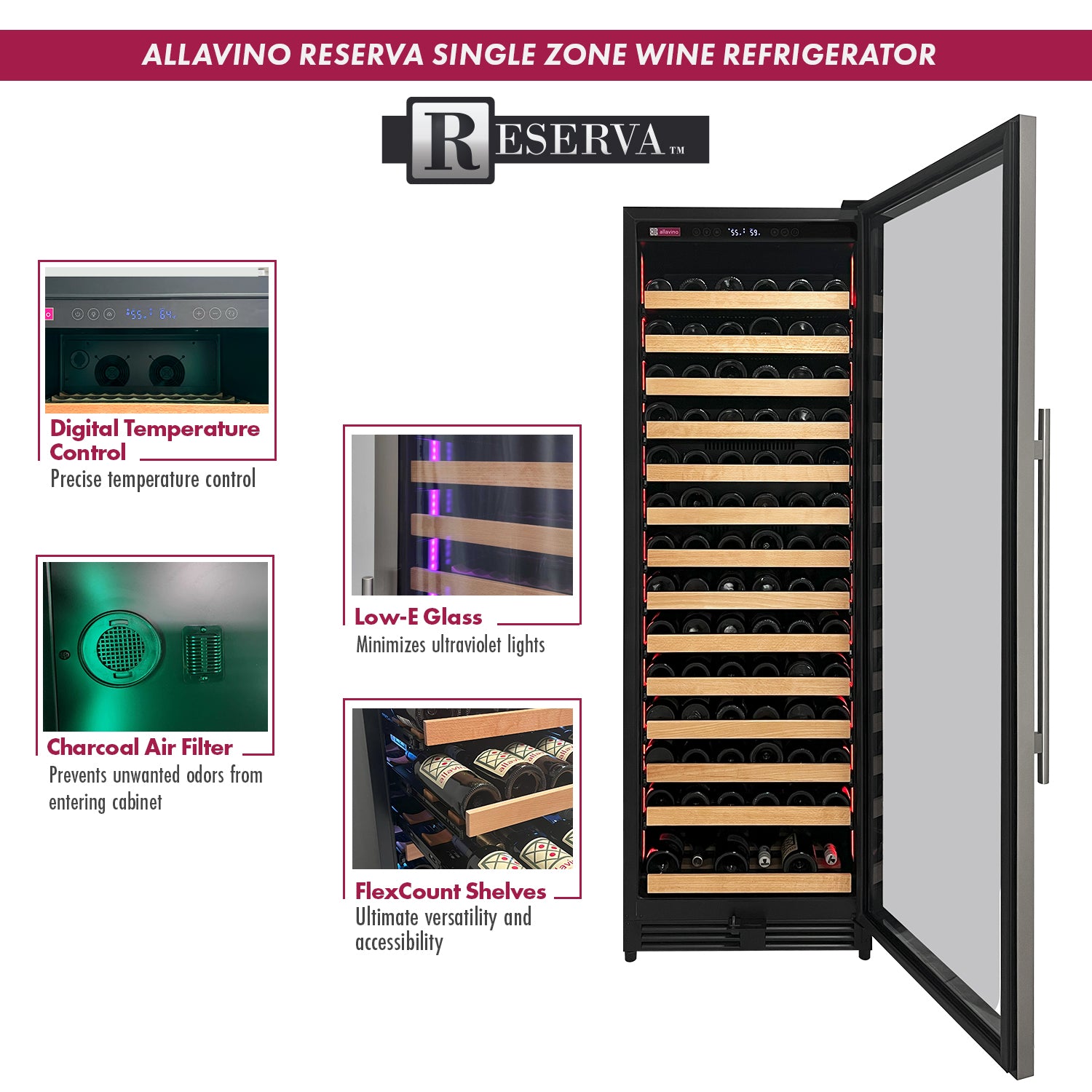 • Allavino Reserva Series Wine Refrigerator stylishly stores your wine, thanks to the seamless stainless steel doors and customizable LED lighting